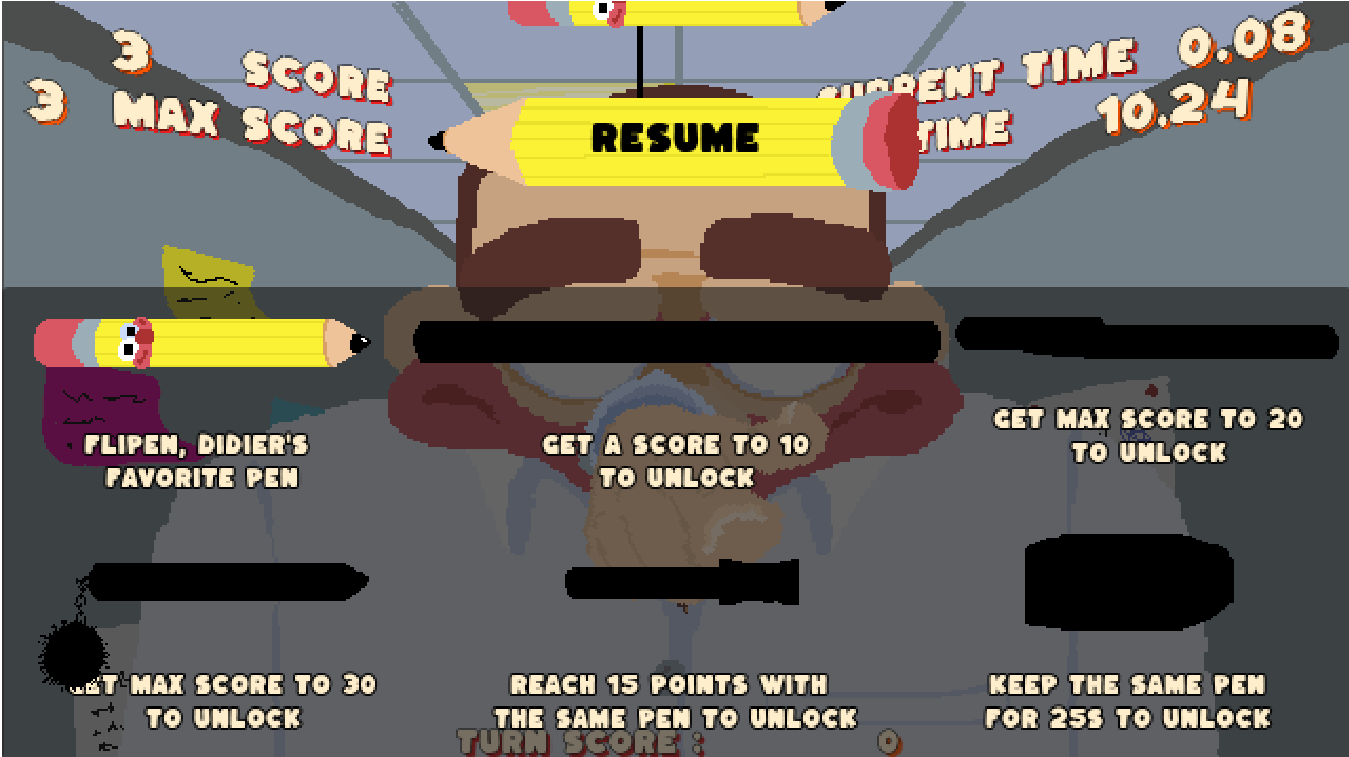 Don't get too greedy however ! Keep every pen flying for more than 5 seconds to save your score and progress through the unlocks.